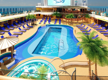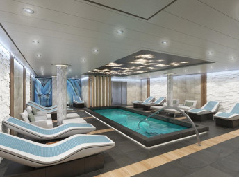 Serenity (18. paluba) 8:00 - 23:00. Oddychová zóna pre dospelých 21+ s bazénom, barom, lehátkami a kreslami a 2 vírivkami.