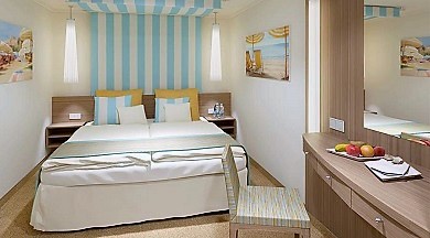Vo všetkých kajutách sa nachádza regulovateľná klimatizácia, safe, kúpeľňa so sprchou, sušič na vlasy, telefón, Tv s plochou obrazovkou.
