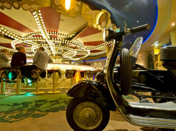 Zariadenie kajút: dvojlôžková queen posteľ (matrace Posturepedic Sealy, bielizeň z egyptskej bavlny), skriňa, kúpeľňa so sprchou, vaňou a WC, sušič na vlasy, kozmetika H20+ spa (šampón, kondicionér a telové maslo), obývacia časť so sofa a stolíkom, oddeliteľná závesom, 22 palcová plochá Tv, bezpečnostná schránka, telefón s priamou linkou, zrkadlo, regulovateľná klimatizácia.