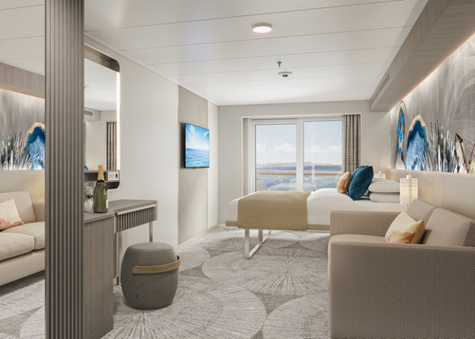 | SI - Suite s veľkým balkónom Aft-Facing 41 m² / balkón 18 m². 9. paluba - vzadu. Max 2 osoby. Výhody Suite. | 5 426 € 2 713 € za osobu |