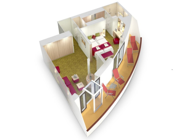 BP - Kajuta s balkónom Panorama PREMIUM 21,5 m² / balkón 4,5 m². Max 3 osoby. Cenový model Premium + výhody Suite. 7 630 € 3 815 € za osobu