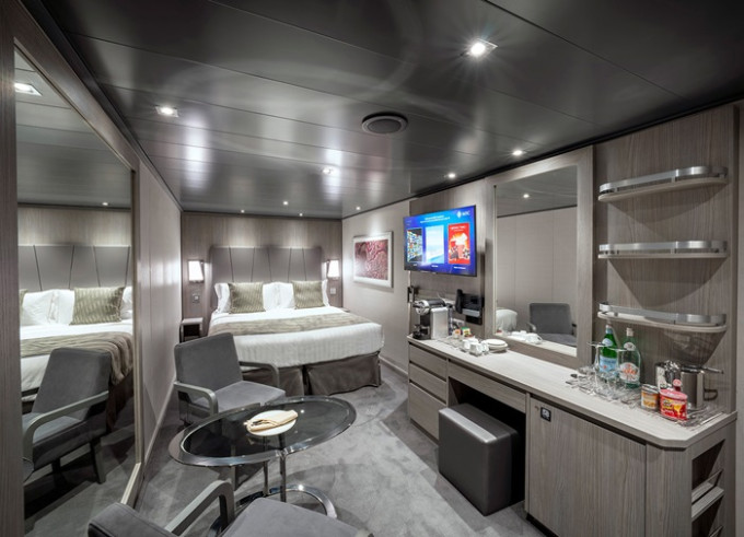Kajuty sú navrhnuté tak, aby vyhovovali všetkým vašim potrebám počas vašej plavby. Vyberte si z 11 rôznych typov kajút a apartmánov s balkónmi vrátane prestížnych apartmánov na konci lode, 50 apartmánov s rozšírenými balkónmi a 32 rôznych apartmánov s vonkajšími súkromnými vírivkami.