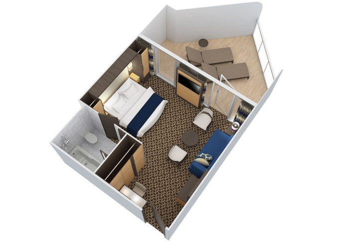 | 4C - Kajuta s veľkým balkónom od 16,5 m² + balkón 6 m². Umiestnenie vpredu a vzadu. Max 2 osoby. | 6 240 € 6 240 € za osobu | ||