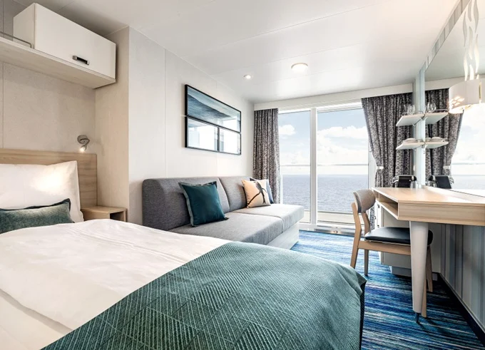 | BAHO - Kajuta s balkónom kat. H 17 m² + balkón 5 m² s obmedzeným výhľadom. 6-9. paluba. Max 4 osoby. | 5 560 € 5 560 € za osobu |