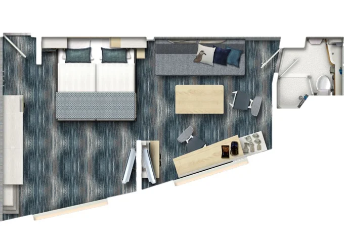 | JBAO - Junior Suite s balkónom 26 m² + balkón 7 m² so stolom. . paluba. Max 4 osoby. Výhody Junior Suite. | 19 798 € 9 899 € za osobu | ||