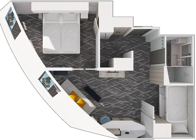 | JKBO - Junior Suite s balkónom B 26 m² + balkón 7 m² so stoličkami a podnožkami. 8-12. paluba. Max 4 osoby. Výhody Junior Suite. | 5 307 € 1 769 € za osobu | ||