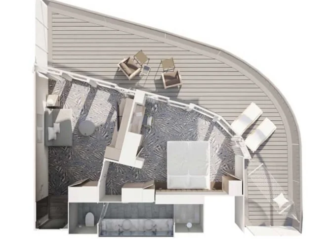 | JKBO - Junior Suite s balkónom B 26 m² + balkón 7 m² so stoličkami a podnožkami. 8-12. paluba. Max 4 osoby. Výhody Junior Suite. | 5 706 € 1 902 € za osobu | ||