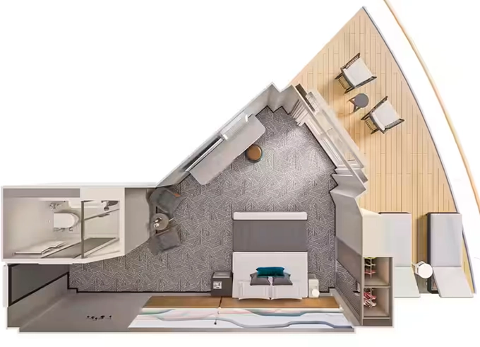 | H3 - The Haven Deluxe Owner's Suite s veľkým balkónom 92-94 m² / balkón 57 - 68 m². 13. - 15. paluba. Max 2-6 osoby. Výhody The Haven. | 25 356 € 12 678 € za osobu | ||