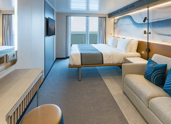 | MB - Club Suite Forward-Facing s balkónom 22 - 25 m² / balkón 7 m². 9. až 13. paluba - vpredu. Max 2 osoby. Výhody Club. | 5 716 € 2 858 € za osobu | ||